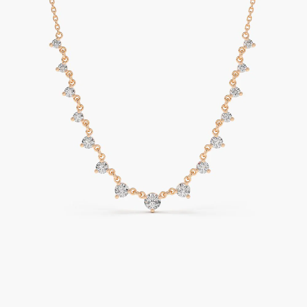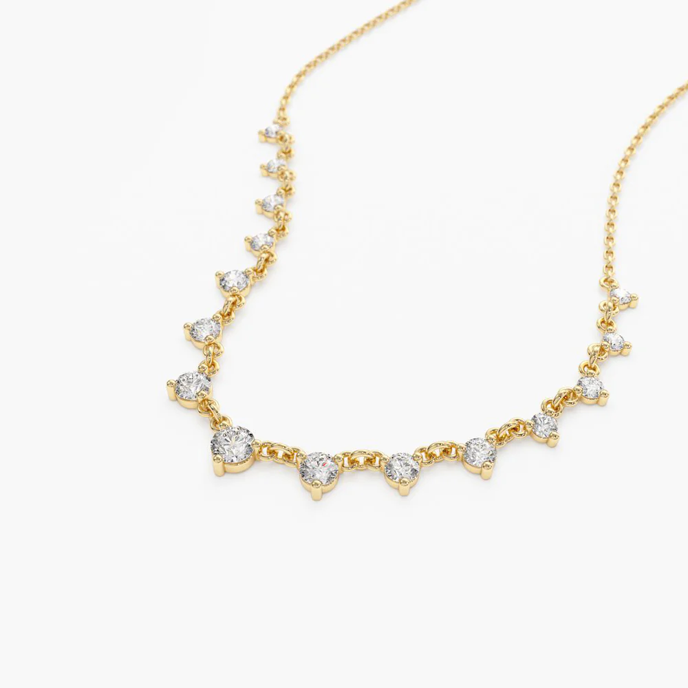 14K Solid Gold 0.85 ctw Solitaire Diamond Graduating Necklace