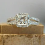 Celebrate your love with this breathtaking 2.50 Ct Princess Cut Diamond Halo Engagement Wedding Ring, beautifully crafted in a luxurious 14K White Gold Finish. Featuring a brilliant princess-cut center diamond, this ring is surrounded by a sparkling halo of smaller diamonds, enhancing its radiance and elegance. The band is adorned with shimmering accent stones, adding extra sparkle and sophistication. A perfect choice for engagements, weddings, or anniversaries, this ring is designed to dazzle and make every moment unforgettable.
