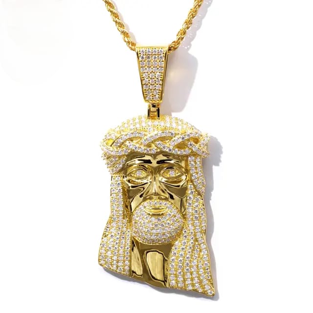 3Ct Round Cut Diamond Hip Hop Jesus Pendant Necklace Iced Out 14K Yellow Gold Finish Free Chain