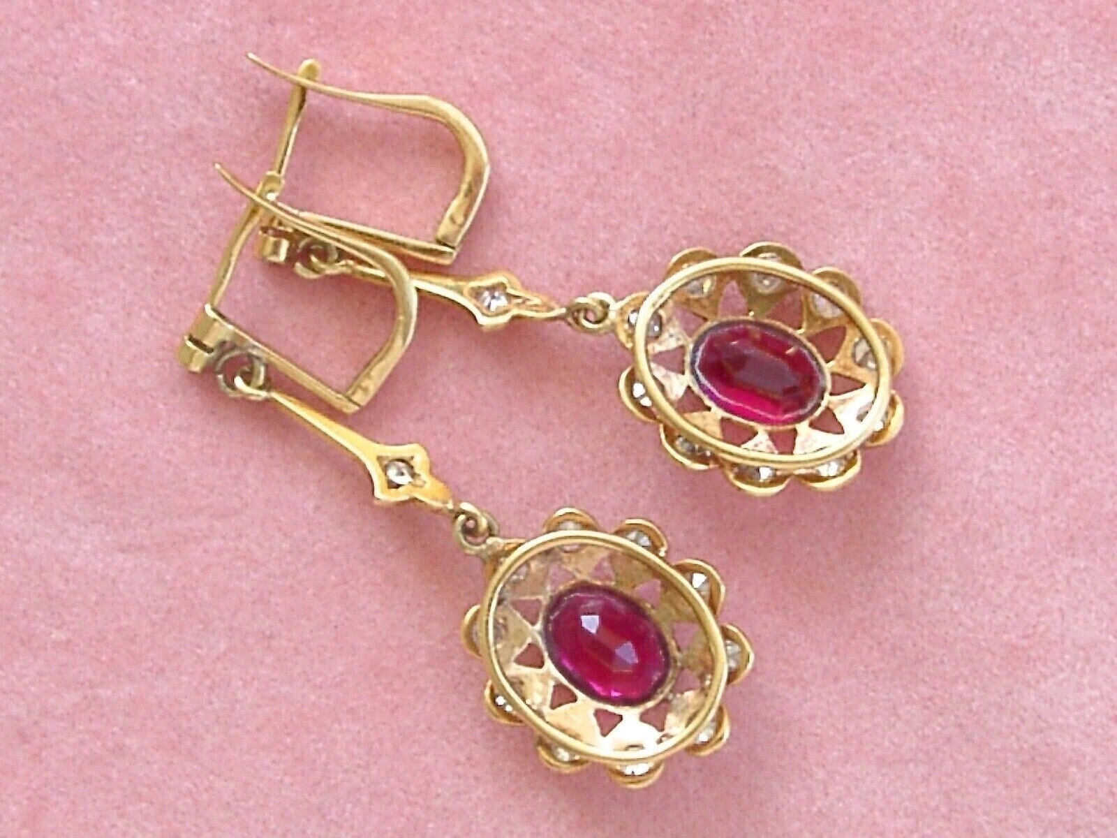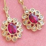 Oval Cut Simulated Pink Ruby Stunning Drop Dangle Earring 14K Yellow Gold Plated