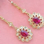 Showcase your elegance with these stunning Oval Cut Simulated Pink Ruby Drop Dangle Earrings. Designed to capture attention, each earring features a vibrant oval-shaped pink ruby simulant that shimmers with brilliant color and clarity. The stones are gracefully set in 14K yellow gold plating, adding a rich, warm glow to the overall look. Perfect for special occasions or adding a touch of glamour to your everyday style.